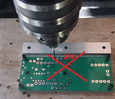 用M3X6mm螺絲固定以免PCB滑動!依步驟2及3可直接經PCB(無貫孔)將其他PCB固定孔依序加工! |