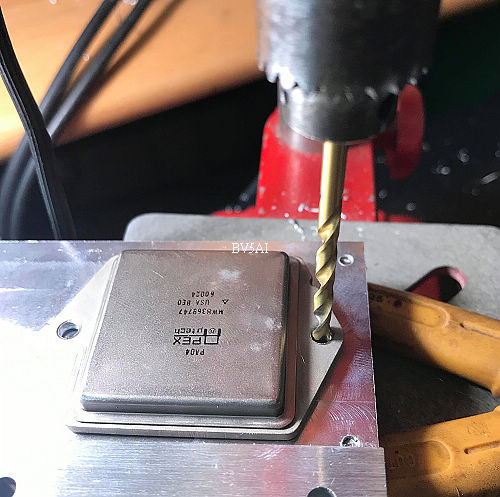 使用3.5mm鑽頭依圖片用手轉動鑽頭標定位!然將PA04及PCB取下後!打穿並攻M4螺絲牙。 提示:攻牙(絲)需要潤滑可用 WD40、針車油、機油、食用油皆可 |