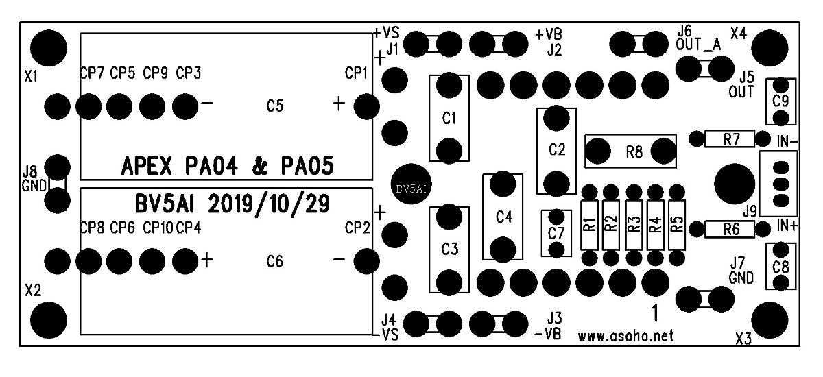 · 測試時,電源極性、腳位嚴禁接錯!請重複檢查!請限流 1A以下或加保險絲!!輸出要加假負載! · 靜態電流約50mA! · 裝機時連接電源前需將濾波電容放電至0V! · 小心觸電 最高有DC200V電位差!! · 嚴禁使用電腦 CPU用的含銀散熱膏!會導電的有燒毀PA04! |