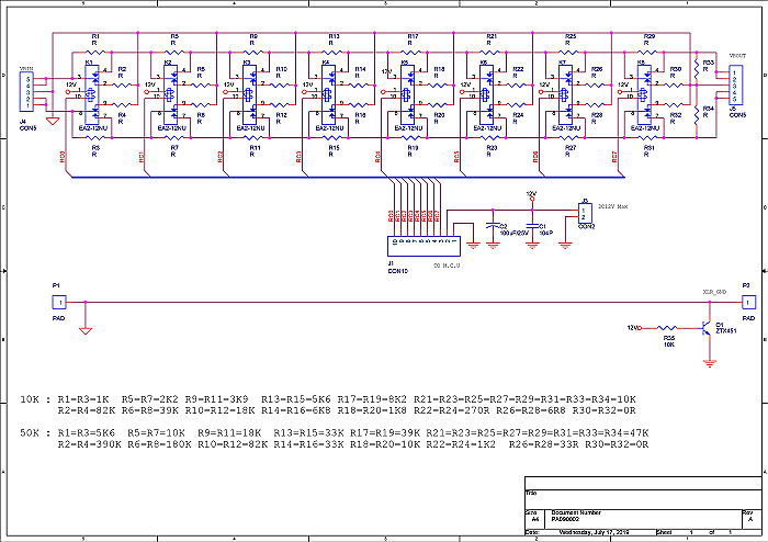 不上電時輸入阻抗測試左右聲道應相同值(50K微小誤差)如有明顯差異 請檢查衰減PCB 是否誤件、空焊、短路。